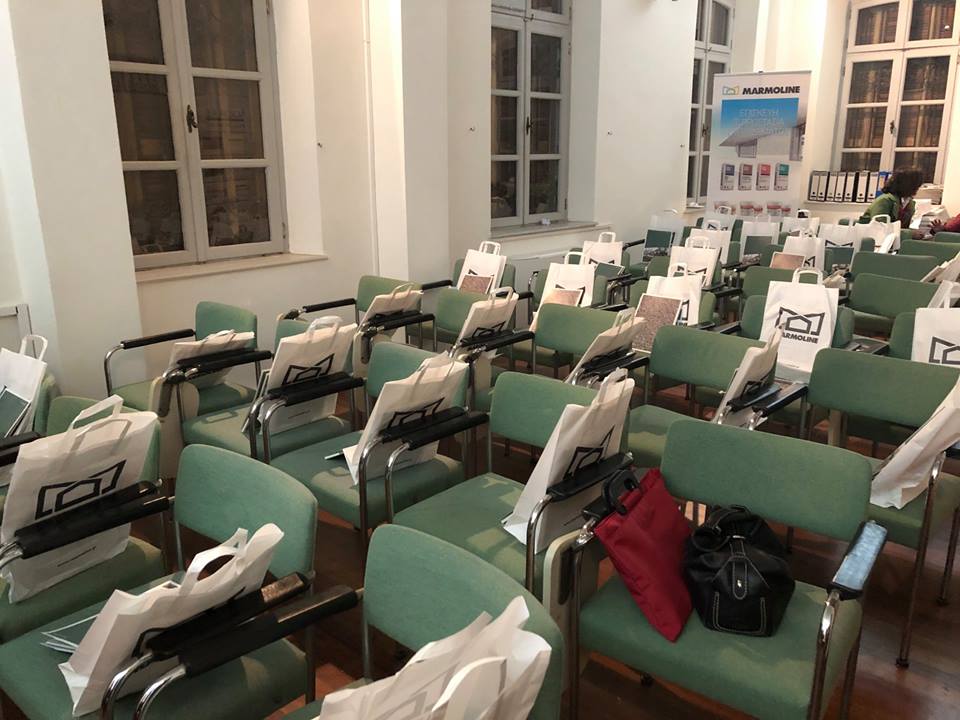 Παρακάτω θα βρείτε στιγμιότυπα από την πολύ ενδιαφέρουσα ημερίδα που πραγματοποιήθηκε στις 23 Ιανουαρίου στο ΤΕΕ Π.Τ. Δωδεκανήσου σε συνεργασία με την MARMOLINE και τον Όμιλο ΗΡΑΚΛΗΣ, με θέμα: “ΝΕΟΣ ΚΑΝΟΝΙΣΜΟΣ ΤΕΧΝΟΛΟΓΙΑΣ ΣΚΥΡΟΔΕΜΑΤΟΣ 2016” και ομιλητές τους: Νίκο Μαρσέλλο, Ελευθερία Τσιαβού, Βιβή Δηλαβέρη και Βασίλη Φωτιά.