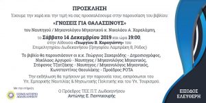Το ΤΕΕ Δωδεκανήσου και το Ε.Β.Ε.Δ. σας προσκαλούν στην παρουσίαση του βιβλίου: «Γνώσεις για Θαλασσινούς» του Ναυπηγού Μηχανικού κ. Νικολάου Α. Χαραλάμπη