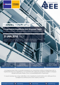 Το ΤΕΕ Τμ. Δωδεκανήσου σε συνεργασία με τον ομιλο YTONG-THRAKON διοργανώνουν Τεχνικό Σεμινάριο στις 31 Ιανουαρίου 2018, 18:00μμ στο ΤΕΕ Δωδεκανήσου Ρόδου, Μητροπόλεως 4. Στο σεμινάρο θα συζητηθούν τα παρακάτω θέματα: Ευρωπαϊκη νομοθεσία στον κτιριακό τομέα. Συστήματα ενεργειακής αναβάθμισης κτιρίων. Κατανόηση εφαρμογής συστήματος θερμομόνωσης Παρουσίαση σύγχρονου τρόπου δόμησης με YTONG Το πρόγραμμα αναλυτικά: